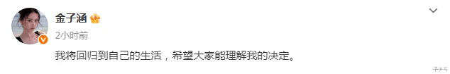 金子涵宣布退圈, 觉得娱乐圈不舒服就该退, 去做自己喜欢做的事情